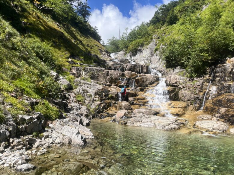 黒部川源流域の支流、赤木沢で沢登りをしました。
