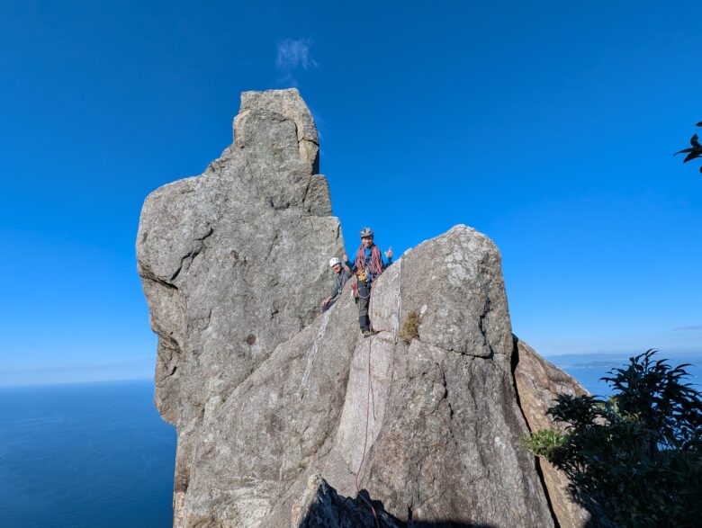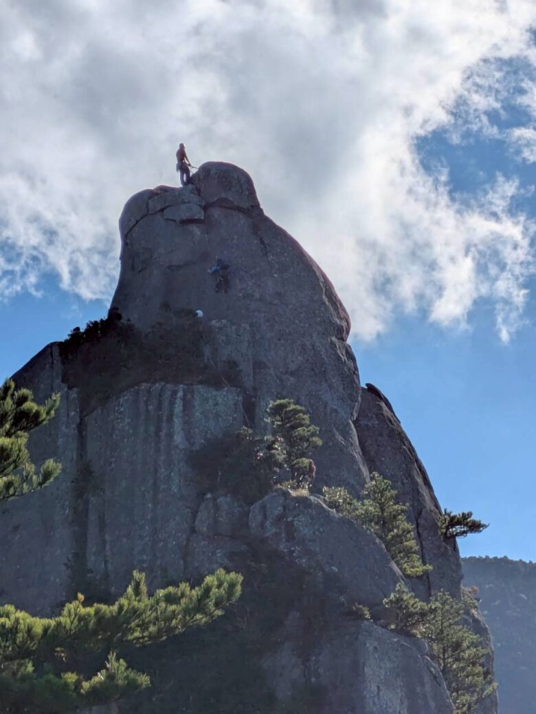 | 行程 | 立神公園駐車場7:00-主稜線縦走1P目取付き8:30-フィンガーピーク基部9:15-石塔9:30-南峰10:30-東稜11:20-イースタンコルから懸垂12:00-右岸稜取付きまで下山12:25 |