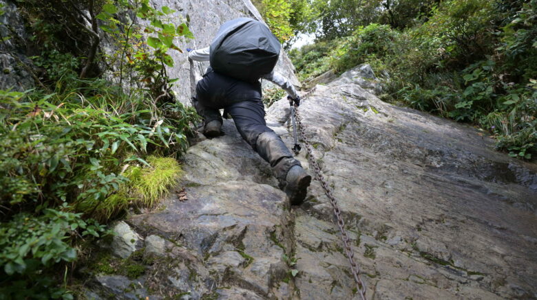 ここまで急登はありませんでしたが、三嶺直下は鎖場もあり、急峻な斜面になってました。