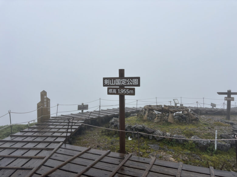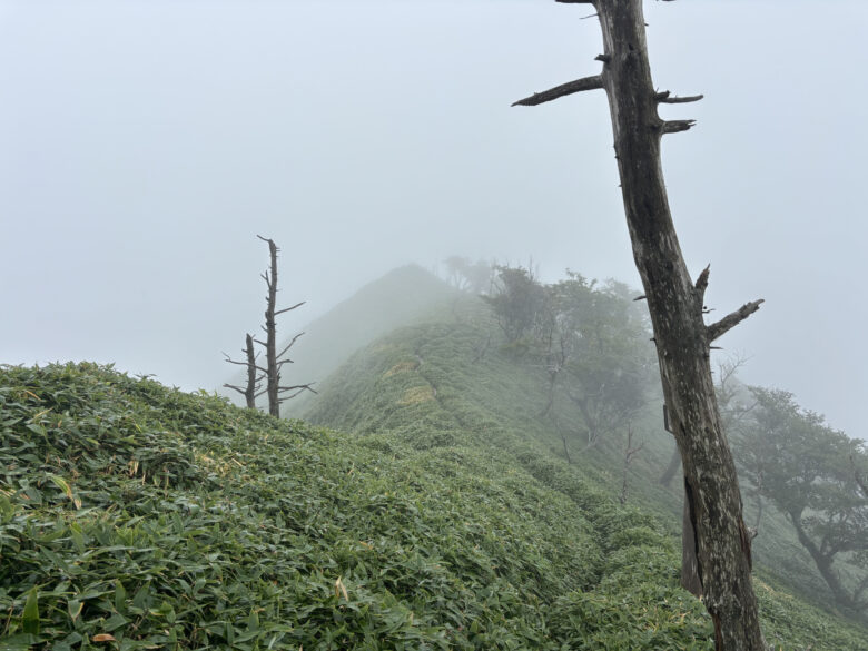 剣山〜次郎笈〜丸石までの稜線歩きが雨風が酷く、視界も悪かったです。