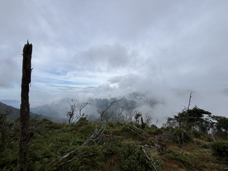 ここでちらっと青空が見えたので、これから先天気が回復することを祈りながら山頂を目指します。