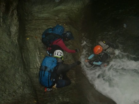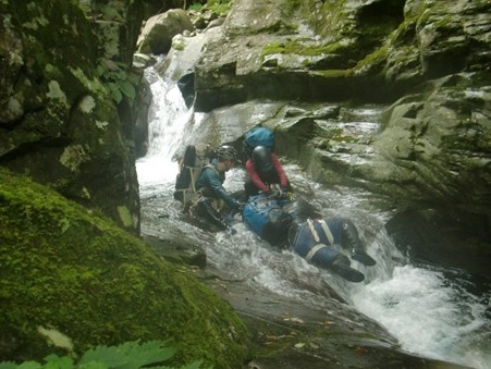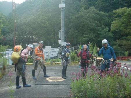 当日は、初日にメンバーが蜂に刺されるのと膝の脱臼というアクシデントがあり、2日目はあまり無理をせず、二股の少し先で出渓し十字分岐で八丁坂にむけてエスケープ、後はロープウェイで観光気分も味わい下山となりました。