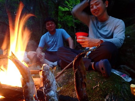 川魚がこんなに美味しいとは、ふっくらして臭みも無い。焚き火にも不思議な力があるようだ。全てがしっくり体に馴染む。