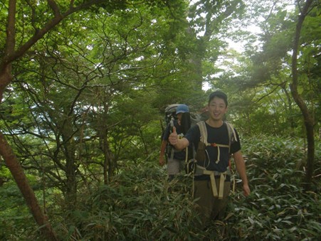 ここからは起伏はあまり無い。登山道なのでピンクテープがあるが、崩壊した箇所が幾つかあり慎重に進む。コースタイム1時間が2時間かかる。