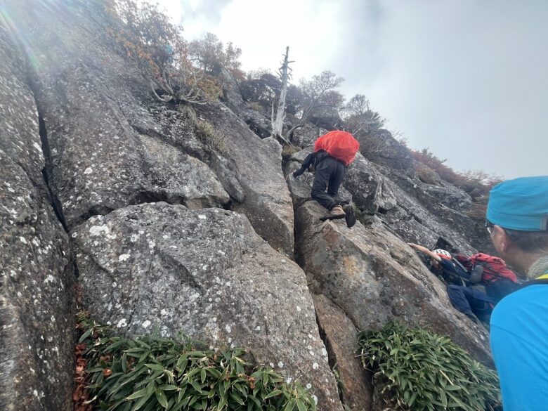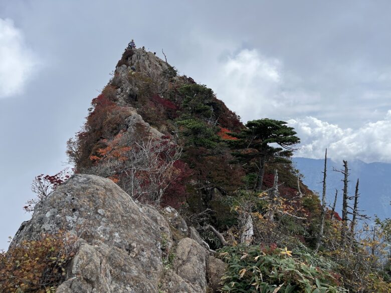 登山者で賑わう土小屋登山口に到着する。駐車場は満杯で約500m戻った空いてるスペースに止めさせてもらう。東稜に入ったら静かになるだろうと思いきや、人気ルートなのか、5パーティぐらい入っていた。南尖峰手前に、核心部5m程度の壁があるが不安であれば、長めのスリングを数本持っておくと安心だ。