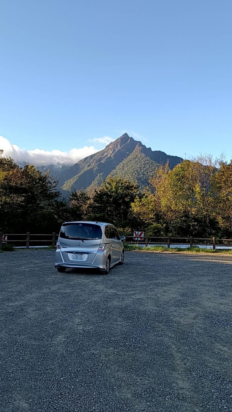 土小屋へのアプローチは、UFOラインで絶景ドライブ。途中の広場で朝食タイム。
